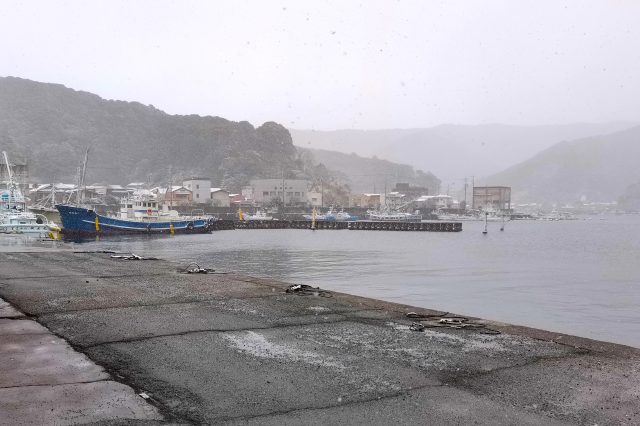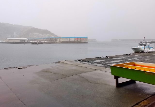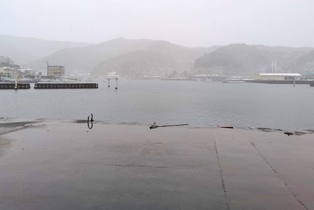 天候 曇り→雪 沖 西の風 水温 12.3℃
